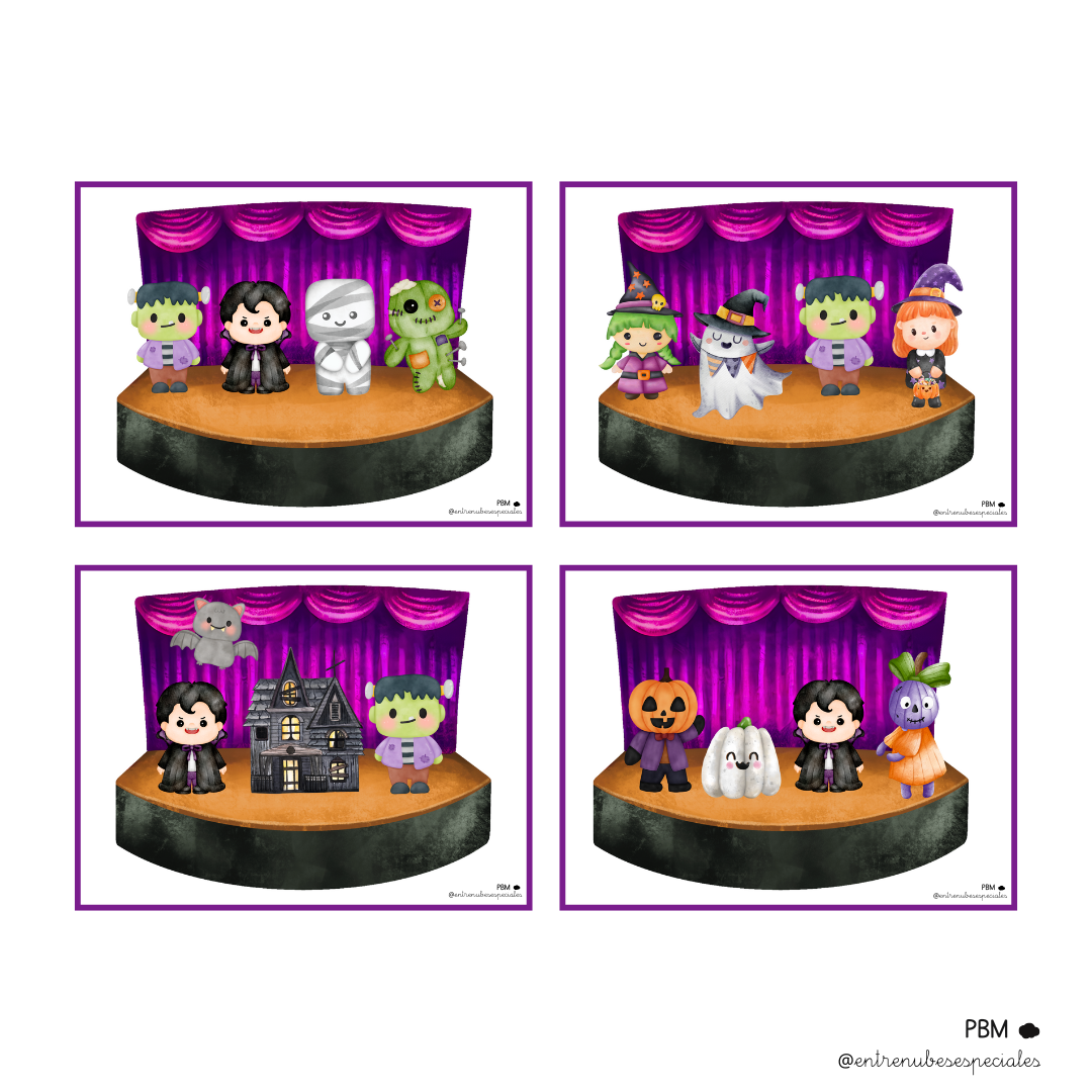Un material de imitación de modelos colocando en cada escenario los personajes que indica la tarjeta.